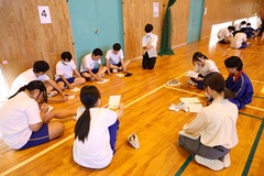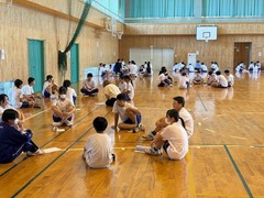 9月26日(金)は、秋の一日が行われます。秋の一日に向けて全校集会を行いました。全体説明の後、縦割班に分かれて、班の目標決め、役割分担決めです。